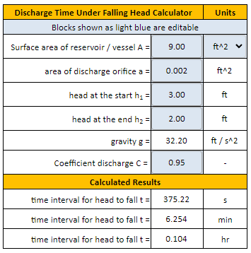 - Discharge Time under Falling Head Formulae and Calculator