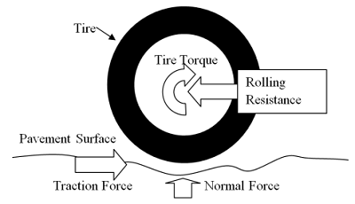 - Road surface, which can affect the coefficient of friction and the rolling resistance force