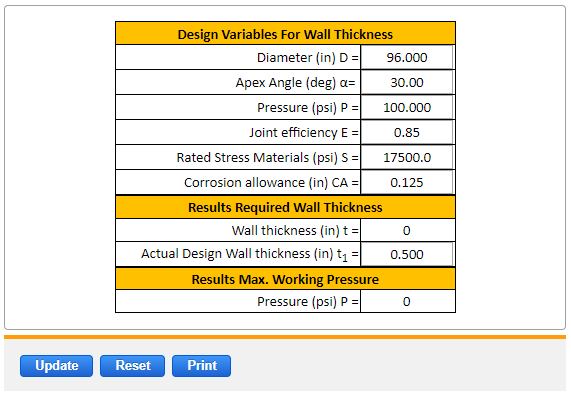 Applications of Stress in Cone or Conical Section Seam Equations and Calculator